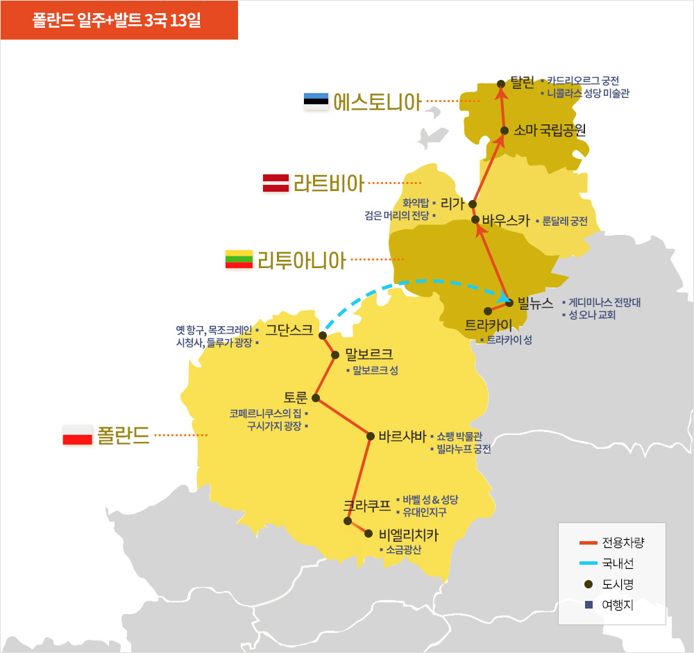 하나, 폴란드의 주요 도시를 깊이있게 탐방, 발트 3국까지 함께 방문하는 여정!