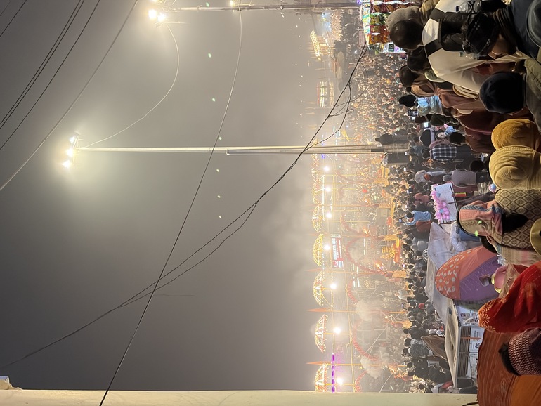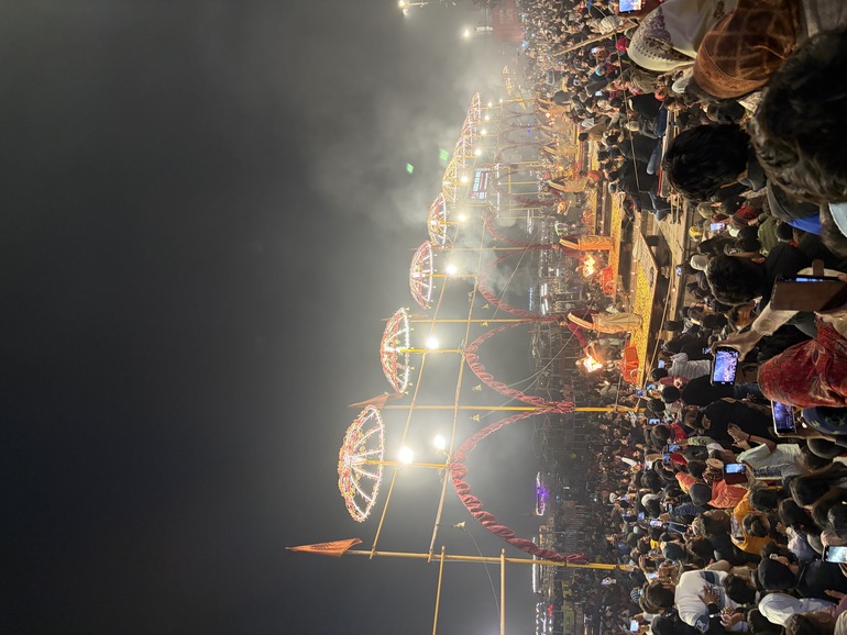 -아르띠 푸자를 위해 모인 순례자들과 관광객들