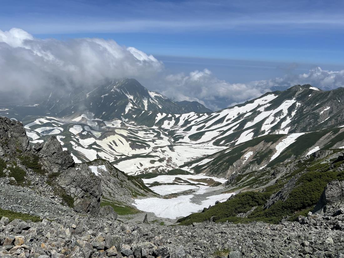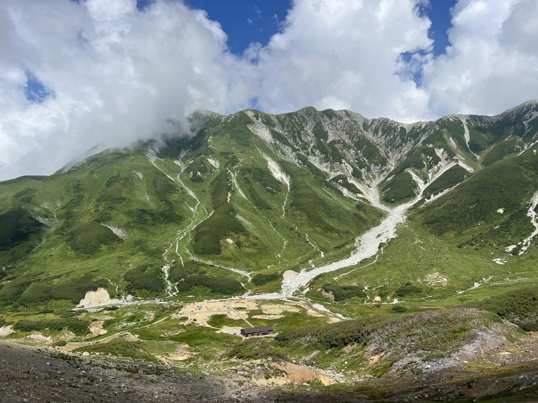 ▶다음은 8월 출장 사진입니다. 8월의 다테야마는 푸른 하늘 아래, 생명력이 왕성한 여름의 모습을 띄고 있습니다. 높은 고도임에도 불구하고 진한 녹색의 초원이 산의 경사면을 따라 광활하게 펼쳐져 있어 청량한 느낌마저 주는 것 같습니다.