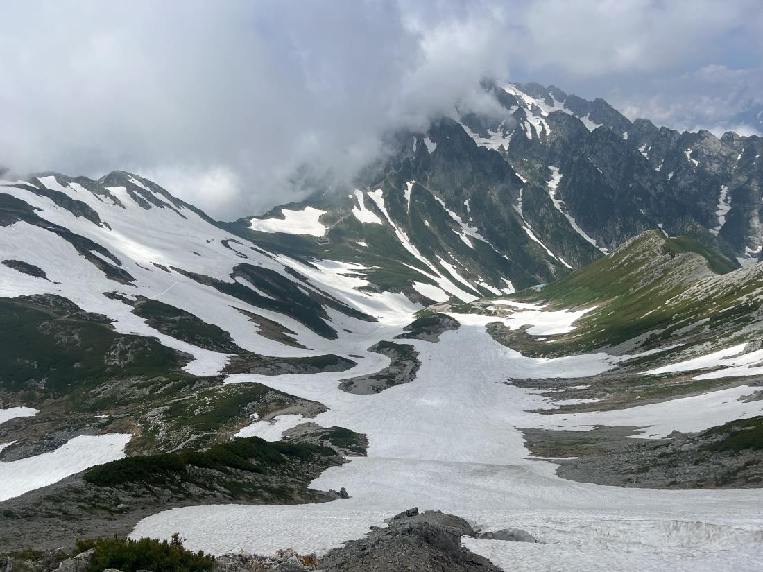 7월의 다테야마는 하절기에도 녹지 않고 남아있는 눈의 흰색과 바위의 회색이 어우러져 신비롭고 압도적인 일본 북알프스의 풍경을 선사합니다.