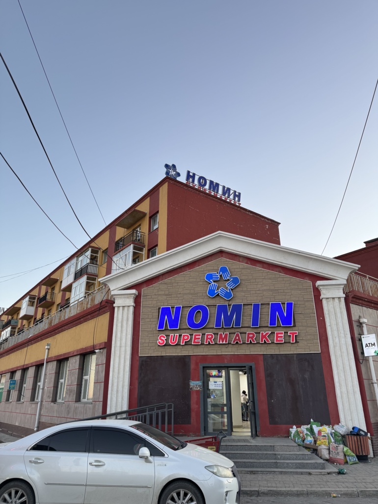 몽골의 대표 마트 몽골에 느즈막이 도착하여 게르로 이동 중에 몽골의 대표 마트에 들러 개인적으로 각각 간단히 장을 봤습니다. 한국의 10월초 기온과는 다르게 공기가 차가웠습니다.