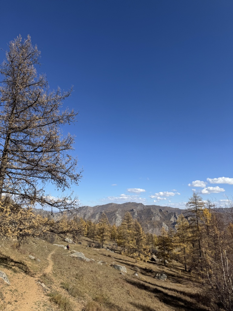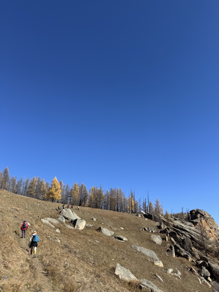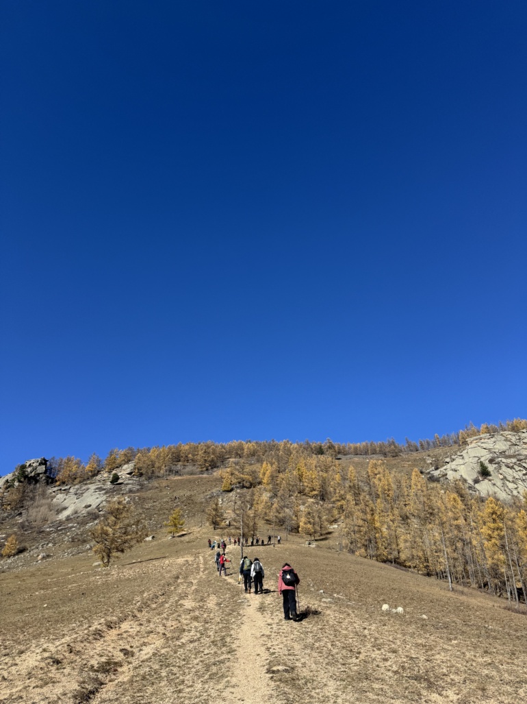 엉거츠산 오르막길 몽골의 가을 풍경은 여름 풍경과 다르게 노랗고 파랬습니다. 여름에는 우거진 수풀에 숨겨져 있는 풍경들이 가을에는 환하게 나타났습니다.