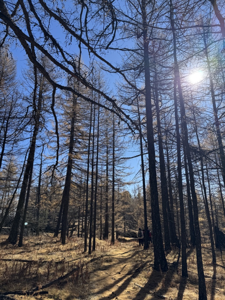 체체궁산의 우거진 삼림 체체궁산은 물이 많은 산이라 여름 시즌에는 바닥이 질퍽질퍽합니다. 그래서 걷기가 마냥 쉬운 산은 아니었습니다. 하지만 가을에는 날이 추워 물도 거의 없고 걷기에도 딱 좋은 날이었습니다.