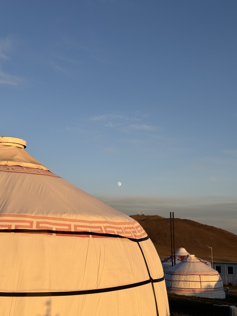 게르 캠프 해가 떨어지고 달이 환하고 밝게 뜬 밤이 되어서야 게르에 도착했습니다. 식당에서 맛있는 스테이크로 허기진 배를 채우고, 각자 방을 배정받아 게르로 이동한 후에 오늘 하루 쌓인 피로를 풀었습니다.