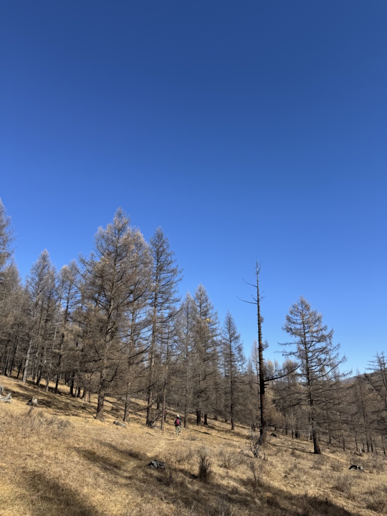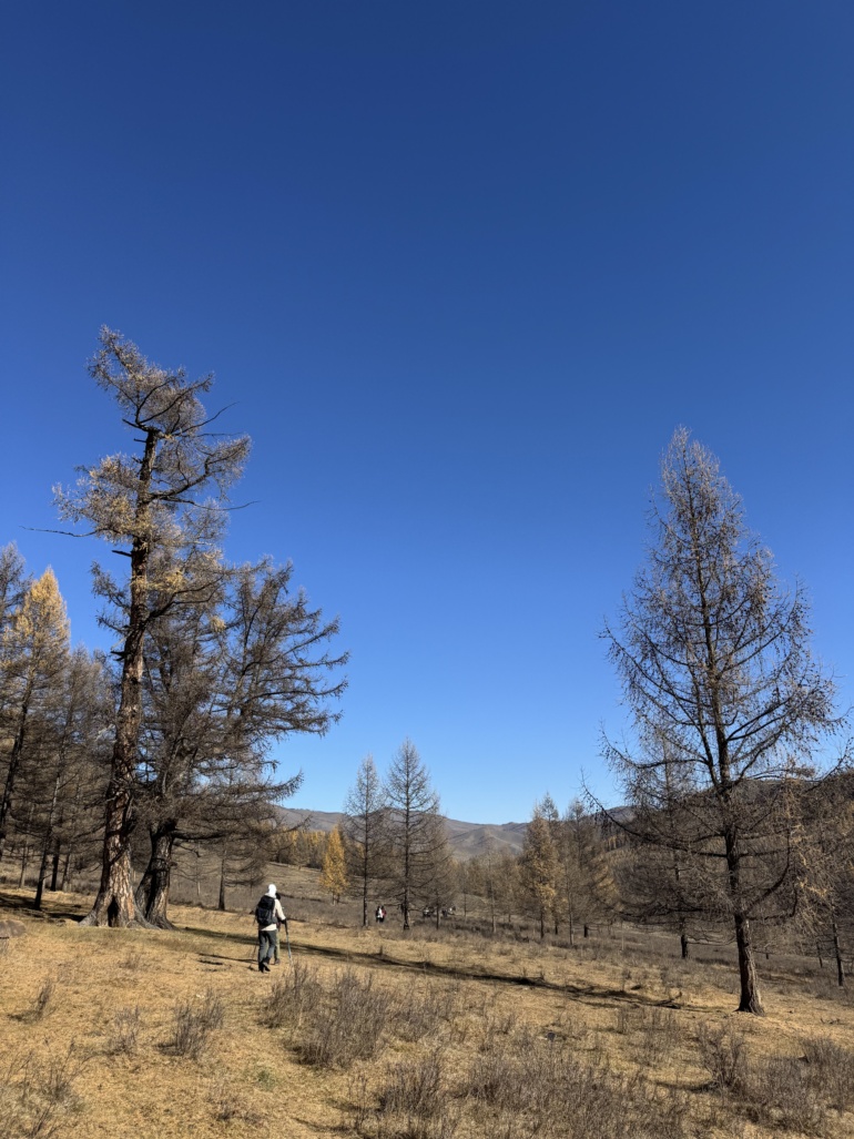 엉거츠산 수풀림 테를지 국립공원의 드넓은 초원을 배경으로 바윗돌 위에서 멋진 사진을 찍고, 시원한 수풀림으로 들어갔습니다. 색이 바랜 수풀들이 바닥을 부드럽게 만들어 걷는 재미가 있었습니다.