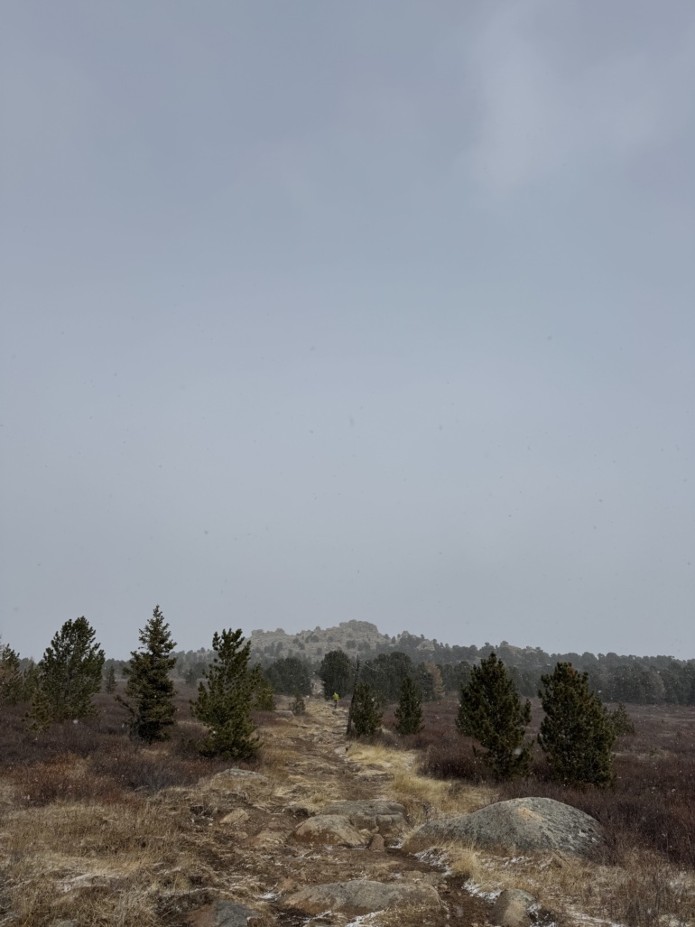 흩날리는 눈발 체체궁산 정상에 가까워지니 눈발이 흩날리기 시작했습니다. 몽골에서 첫 눈을 봤습니다. 눈발이 흩날리는 날씨에도 정상 부근에는 바닥 군데군데 물이 고여 있었습니다.