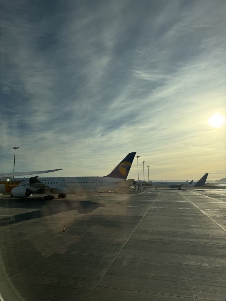 몽골국제공항 이른 새벽 도시락을 싸들고 공항으로 이동하여 안전하게 수속을 마쳤습니다. 그리고 각자 자리를 잡고 가지고 온 도시락으로 아침식사를 했습니다.