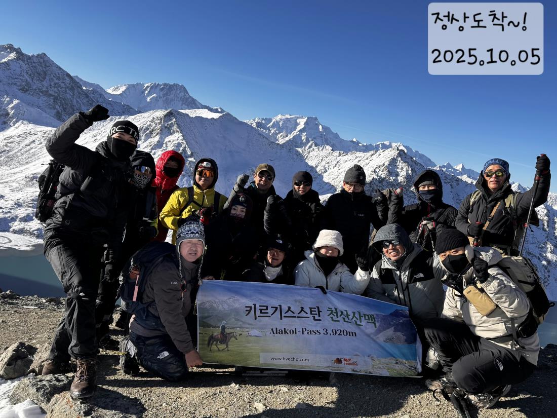 생소했던 만큼 크게 기대하지 않고 갔는데 일주일의 트레킹이 진행되면서 갈수록 감탄과 여운을 남겼습니다. 키르기스스탄은 정말 아시아의 보석같은 곳임을 트레킹을 마치며 더 실감합니다 그 일주일의 트레킹을 추억해봅니다 트레킹 Day1 (10월1일) 1700m 고지에서 시작 2,100m의 알라메딘 협곡을 갑니다 부슬부슬 내리던 비는 고봉이 보이는 평원에서 눈으로 바뀌어 펑펑 쏟아졌고 계곡 폭포에 다다랐을 때는 세상을 하얗게 만들어 장관이었습니다 드넓은 평원에 하늘에서 하얗게 눈이 떨어지고 코앞에는 4천미터 이상의 하얀 봉우리들이 병풍을 치고 있는 이 새로운 느낌을 풍광을 눈으로 밖에 담지 못하는 아쉬움이 안타까웠습니다 이 계절에 와야만 경험하는 풍경입니다 이 계절에는 방수 방풍, 보온을 꼭 준비해주세요~~! 10월2일 스카스카캐년 오랜시간 풍화작용과 침식을 거쳐 형성된 붉은 사암지대의 스카스카캐년은 미니 그랜드캐년. 멀리 이식쿨호수의 파란 수평선과 울통불퉁한 붉은 바위들의 풍경은 그림입니다 외계에 온 듯한 화성에 도착한 듯한 계곡들엔 동물 모양의 바위들이 많아 동화속 협곡이란 이릅을 가졌다고 합니다 전날 추웠던 것과 달리 해가 쨍하니 추울까봐 껴입은 옷이 거추장스러웠습니다. 가벼운 가을복장이면 충분했습니다 트레킹 Day2 (10월 3일) 아라콜패스 2박3일의 트레킹 첫날입니다 산장에서의 숙박이라 갈아입을 옷과 심플한 세면도구 별도의 보조가방에 넣어 산악차량으로 보내고 우리는 가볍게 갑니다 보조가방엔 올라가면 추울테니 두꺼운 패딩은 필수이고 산장에서의 물은 너무나 차가우니 화장티슈로 닦고 대충 할 것 챙기면 됩니다 카라콜에서 알틴아라샨 산장까지 12km. 우리나라 임도같은 길로 12km를 고도를 조금씩 높여가며 가는 코스입니다 가는동안 비가 내렸습니다 비는 눈으로 바뀌기도 하고 다시 비로 부슬부슬 내리니 긴 시간동안이라 고어텍스자켓으로는 한계가 있어 비옷은 꼭 준비해야합니다 비는 내렸지만 경치만은 아름다웠습니다 아시아의 보석이라고 할만큼 계곡도, 높이 삐죽삐죽 솟은 가문비나무도 먼산의 운무도 멋있었습니다 추위에 떨며 도착한 유르트는 따뜻했고 저녁으로 미역국을 먹었고, 밤이되니 하늘이 개고 별이 하나둘 씩 나왔고 새벽1시가 되니 유르트위 하늘에 빽빽하게 별이 빚났습니다 온천이 있었는데 일본 온천 생각하면 안됩니다 좀 열악했던 것 같습니다 ㅎ 난 안갔습니다 트레킹 Day3 (10월4일) 알틴아라샨 유르트산장에서 하이캠프까지 오늘은 3천미터의 고산으로 진입하는 날입니다 하이캠프는 3,600m. 고산증이 걱정되나 한발 한발 천천히 일정 스탭으로 가면 갈 수 있으리라~! 날이 너무 좋았고 쨍한 파란하늘에 하얀 구름이 눈부셨습니다 걸어가는 길 넓은 평원 바로앞엔 거대한 설산들 봉우리가 있는데 스위스 마테호른과 너무나 닮아 있었습니다 그래서 중앙아시아의 알프스라고 이름 붙였나 봅니다 전날 우중 트레킹을 만회하듯이 맑은 하늘과 햇볕은 기쁨이었고 평원과 설산과 가문비 나무들의 풍경은 신선했습니다 날이 좋아 언땅이 녹으며 올라갈수록 발밑은 진흙탕이 되었고 고도가 높아지며 발걸음은 더 느려집니다 12km밖에 안되는데 마치 20km를 가는 듯 길었고 눈길과 진탕길로 발의 힘은 배로 들어 속도 템포는 더 느려지고 가다가 쉬고하는 반복이 더 잦아집니다 고산에 다가갈수록 숨도 더 빨리 차는 것 같습니다 그렇게 기진할 즈음 하이캠프가 보였습니다. 3,600m에 온 것입니다 조금만 움직여도 숨이 빨리 차는 것이 아마도 고소때문일텐데 그래도 머리는 아프지 않았습니다 저녁으로 맛있는 한식을 전용요리사가 해주었고 이런 한식들은 트레킹 내내 큰 힘이 된 것 같습니다 저녁먹고 혜초 전용캠프에서 혜초가 준비해준 침낭속으로 입던 옷 그대로 졸도했습니다 트레킹 Day4 (10월5일) 새벽5시반에 기상, 맛있게 끓여준 누룽지먹고 6시에 아라콜패스로 오릅니다 난이도 4단계~! 올라보면 4.5라고 느낄 수도 있습니다 ㅎ 3,600m의 하이캠프에서 3,900m의 아라콜패스는 300m 고도를 높이는 것이지만 가파른 언덕이라 한시간 반은 잡습니다 푹푹빠지는 눈밭, 높이 스틱을 찍으며 급경사를 영차영차 기어오릅니다 숨이 턱까지 차나 포기하지 않습니다 마지막 급경사 고개를 숨차게 덜컥 넘어서니 아라콜호수가 짠~! 하고 등장했습니다 아~! 이거보러 48km를 왔네~!! 멀리 천산산맥 바위산 위로 아침해가 막 떠오르고 우리는 아라콜호수를 배경으로 혜초 현수막을 펼쳐 들었습니다 한명의 낙오자도 없이 모두 모두 너무 수고하셨습니다~!^^ 하산~! 한시간 반 걸려 올라간 눈길 경사길을 주섬주섬 내려오다 걍~ 주저앉아 썰매타기 시작했습니다 비료푸대는 없었지만 엉덩이로 등짝으로 밀어붙이며 10분만에 하강했습니다 높은 경사 빠른 속도에 첨엔 엄청 무서웠지만 나중엔 손들고 야호~~를 외치며 내려왔다능~~!!^^ 이 계절에 오기를 잘했다는 생각이 듭니다 이런 산에서 이런 눈썰매를 또 언제 타보겠는가~! 넓은 평원들을 지날때 이 평원들이 다 야생화밭이었겠구나.. 7,8월이었다면 정말 이뻤겠구나.. 하며 살짝 아쉬운 감이 있었는데 눈썰매