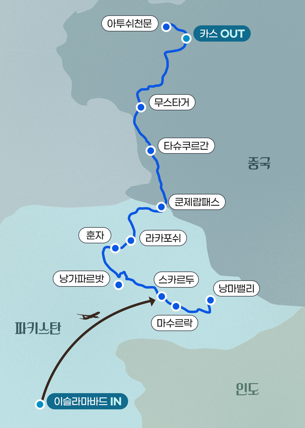 인천-이슬라마바드-스카르두-마수르락-낭마밸리-낭가파르밧-훈자-쿤제랍패스-카스-인천