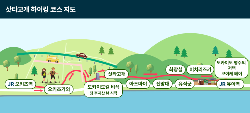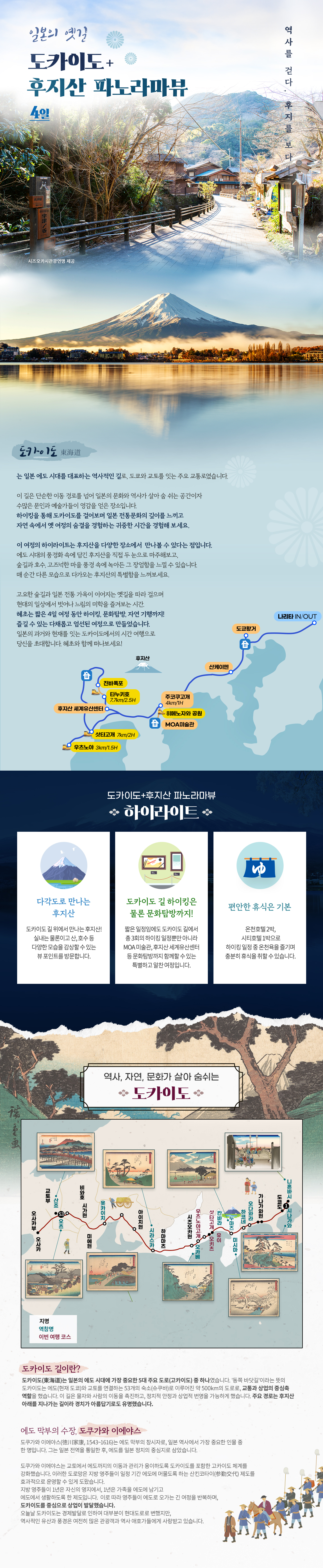 교토에서 에도까지 가는 가장 핵심이 되는 도카이도를 후지산을 보며 여유롭게 걸어보세요.