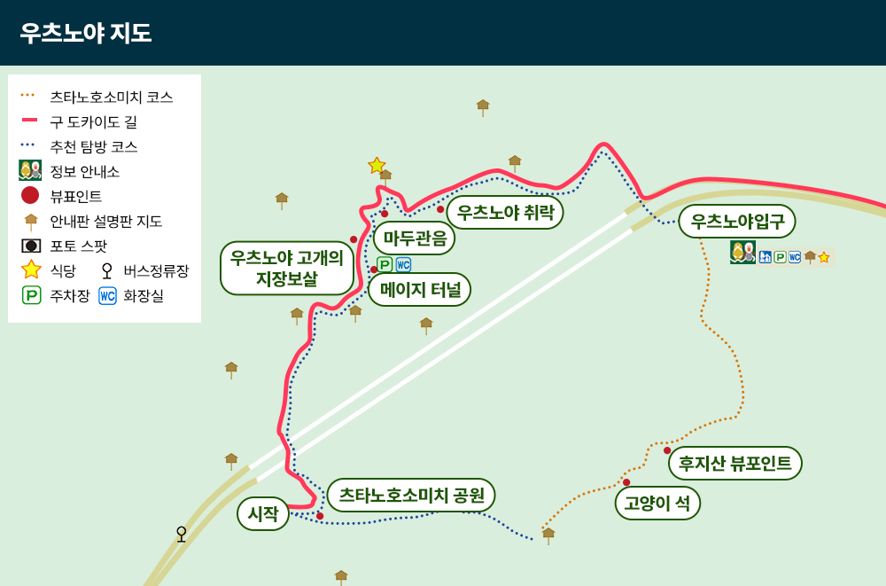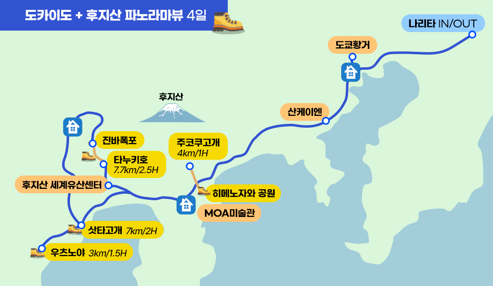 셋. 온천2박, 시내1박으로 걷고 난 뒤 휴식을 취하는 코스