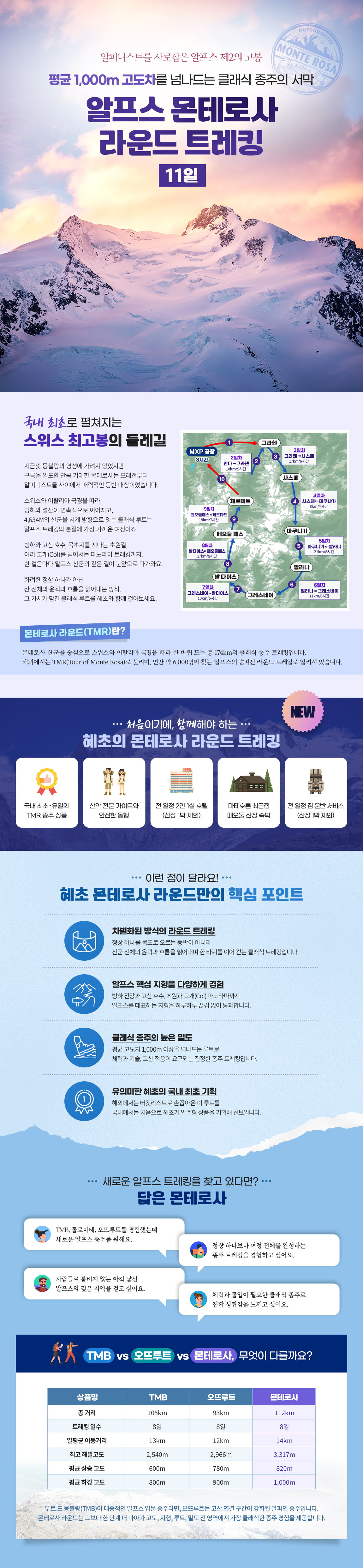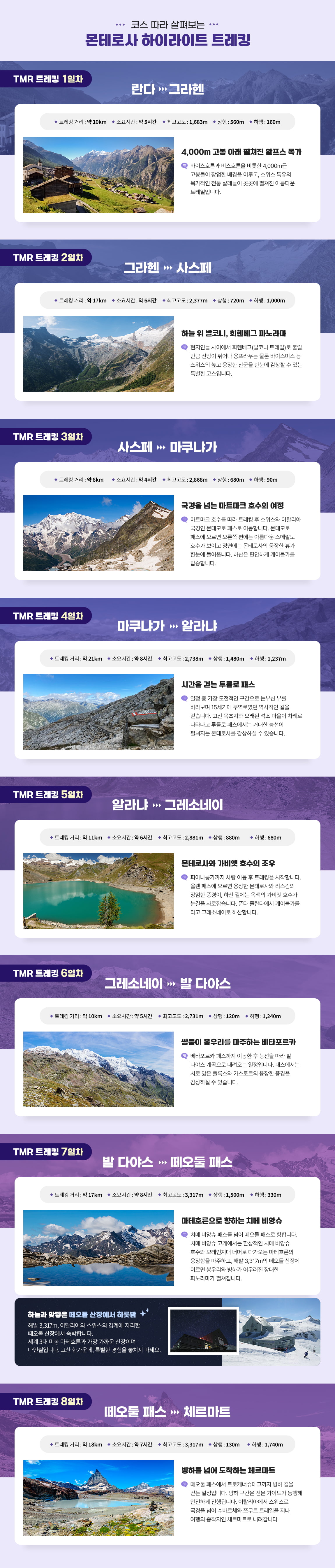 1. 스위스에서 가장 높은 몬테로사 산군을 한 바퀴 도는 알프스 최고의 종주 트레킹