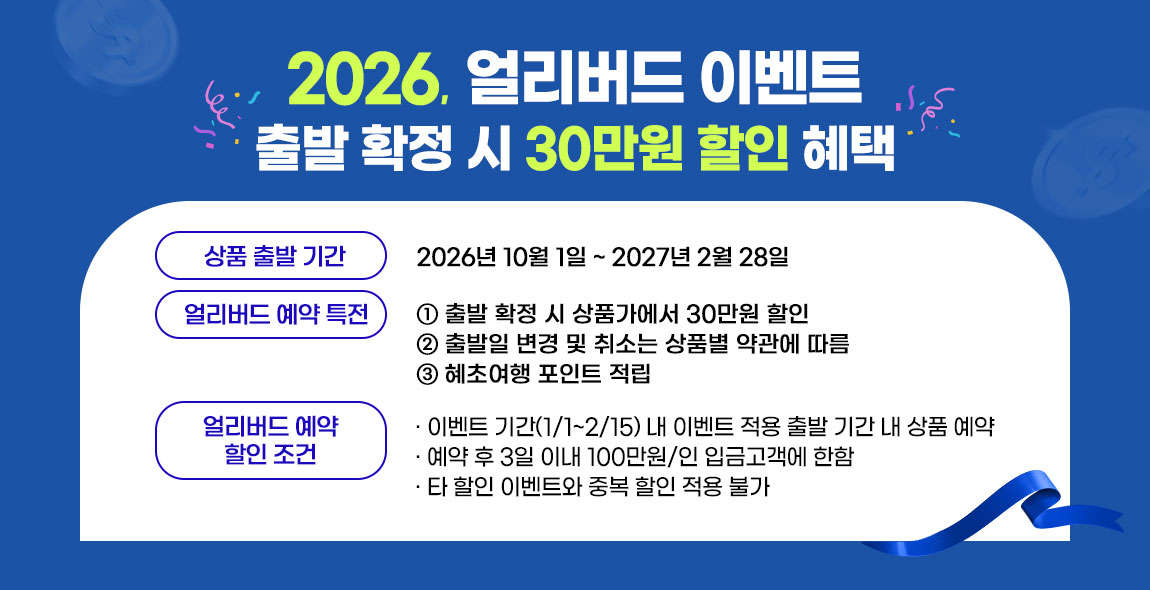 본 상품의 예약과 취소는 국외여행 특별약관이 적용됨을 알려드립니다.