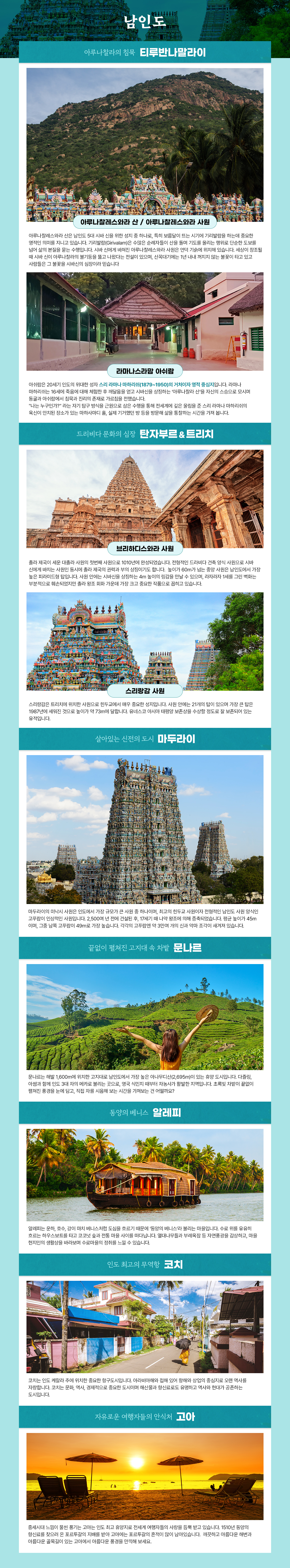 (티루반나말라이, 문나르, 함피, 고아, 조드푸르, 자이살메르 등 개별 여행 가능한 곳으로 예약 시 추천 일정과 비용 등을 상세히 안내해 드립니다.)