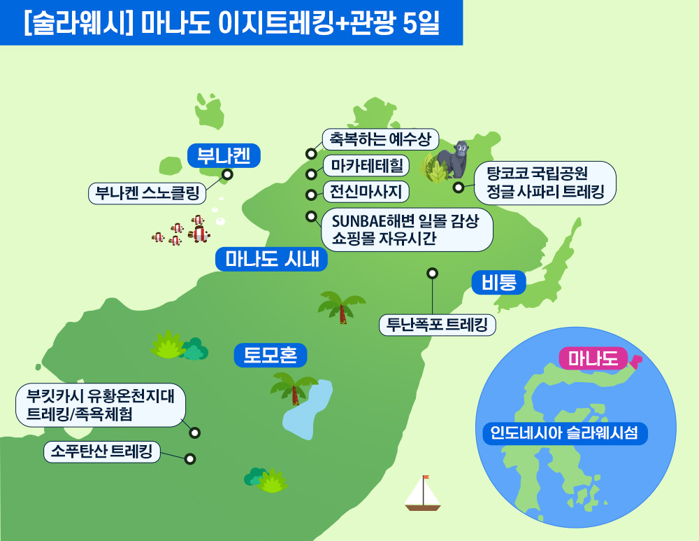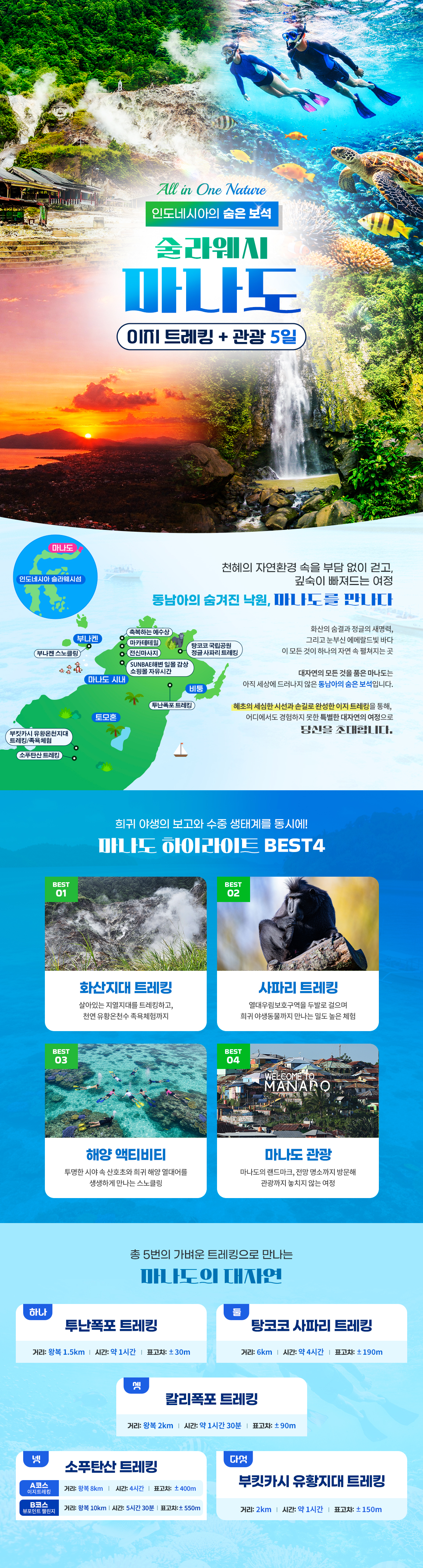 에메랄드빛 바다와 활화산, 폭포가 어우러진 북술라웨시 마나도