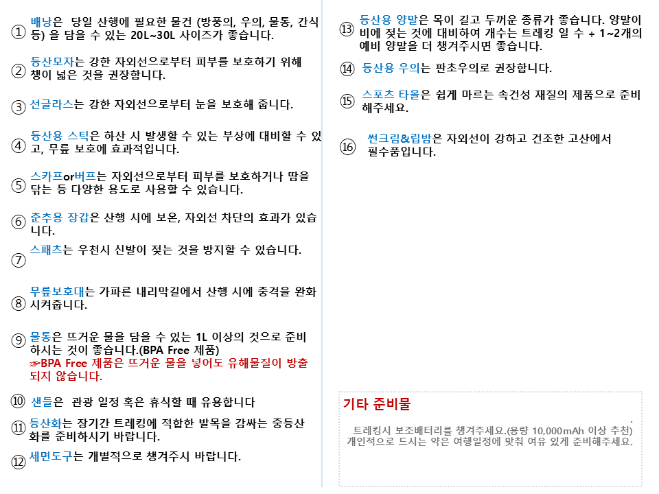 여행일정 중 발생할 수 있는 모든 안전사고에 유의하시기 바라며, 가이드의 안내사항 및 안전수칙을 준수해주시기 바랍니다.