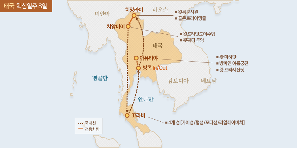 인천-방콕-아유타야-방콕-치앙라이-치앙마이-끄라비-방콕-인천