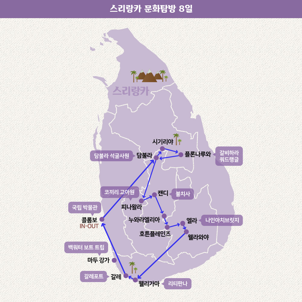 인천-콜롬보-담불라-플론나루와-시기리야-피나왈라-캔디-누와라엘리야-갈레-인천