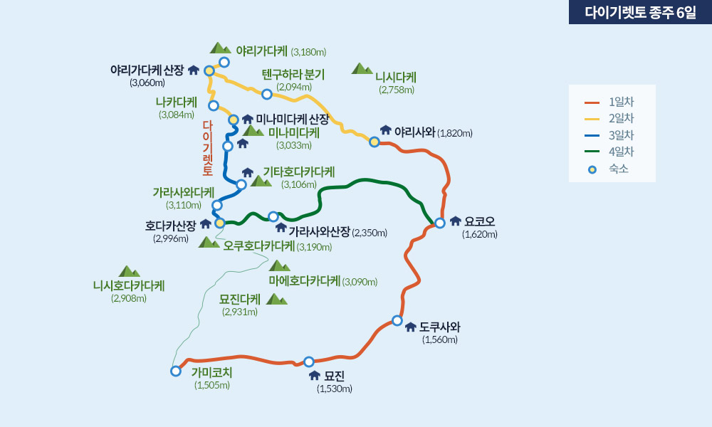 일본알프스의 진면목을 마주하고 성취감을 느끼고 싶다면 도전해보세요! 3천미터급 6개 봉우리를 넘는 북알프스 종주!