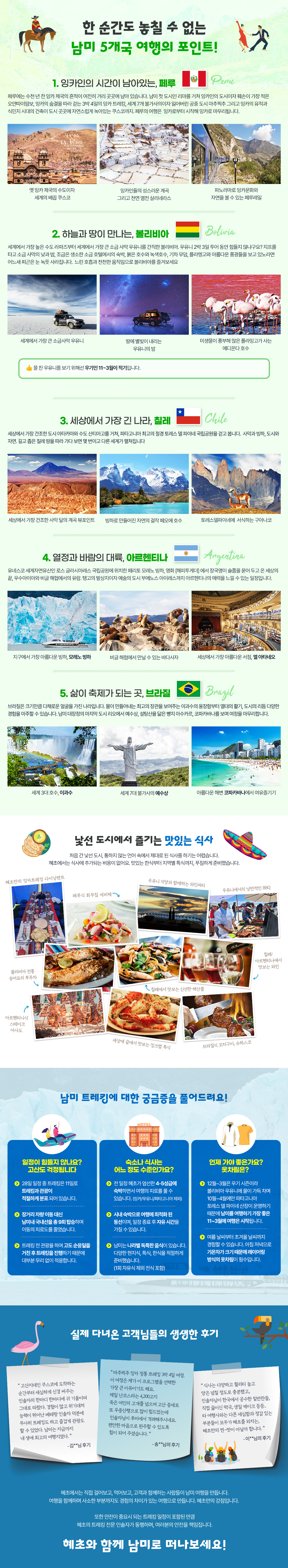 ※ 잉카트레킹, 우유니 소금사막, 토레스 델 파이네 , 엘찰텐 제외
