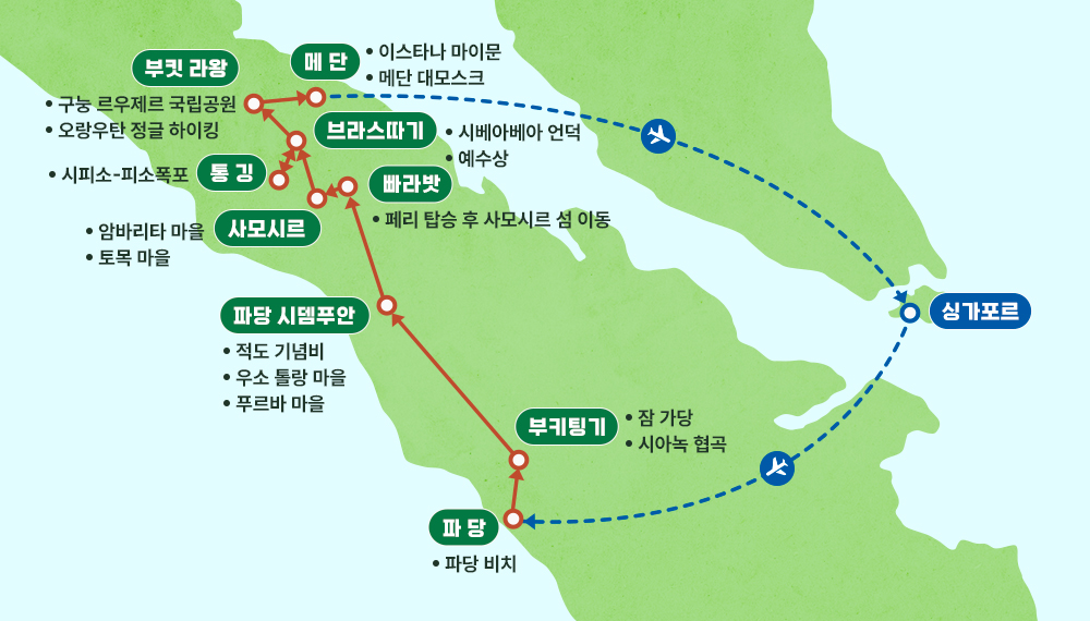 ■ 국제선 항공 및 TAX : 인천~싱가포르~파당/메단~싱가포르~인천 왕복 싱가포르항공 탑승