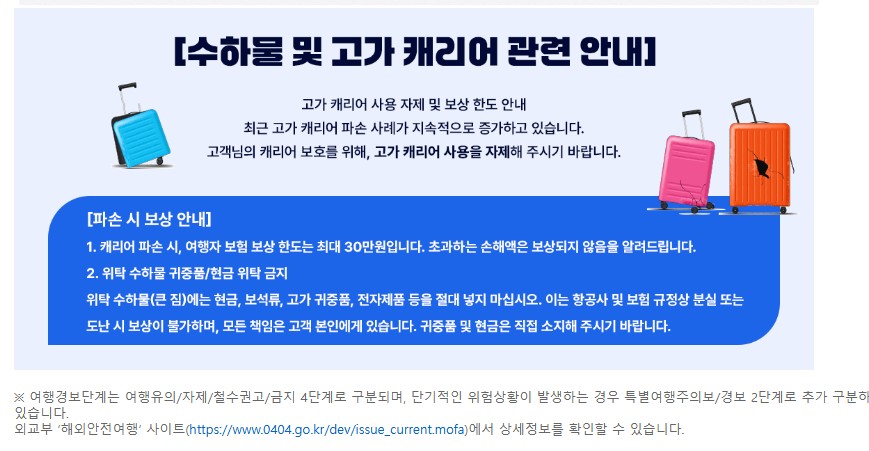 -여행자 개인의 부주의로 인한 여행 일정상 차질에 대해서는 본사 및 항공사에서 책임을 지지 않습니다.