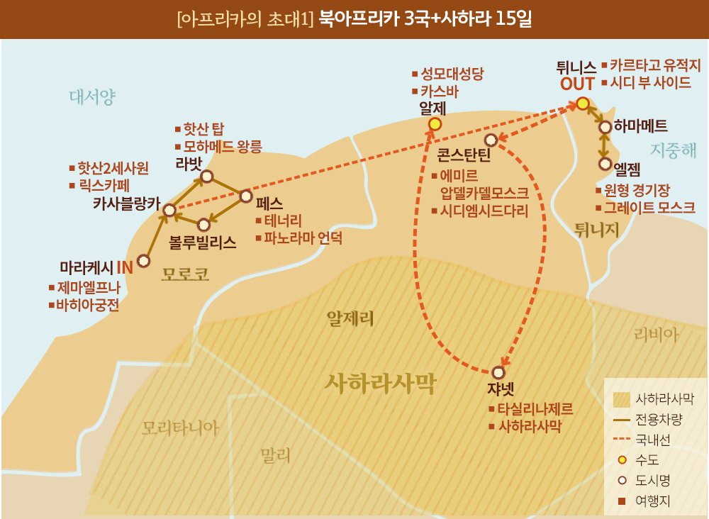 하나. 북아프리카 3개국의 핵심도시들를 집중적으로 방문하는 특별한 여정