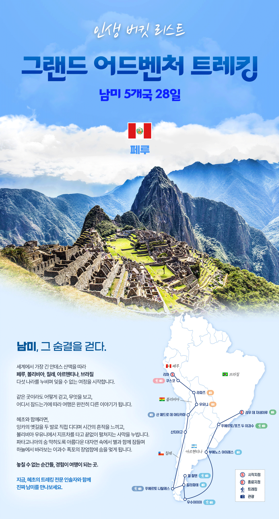 남미 핵심 정통 트레킹 여행!