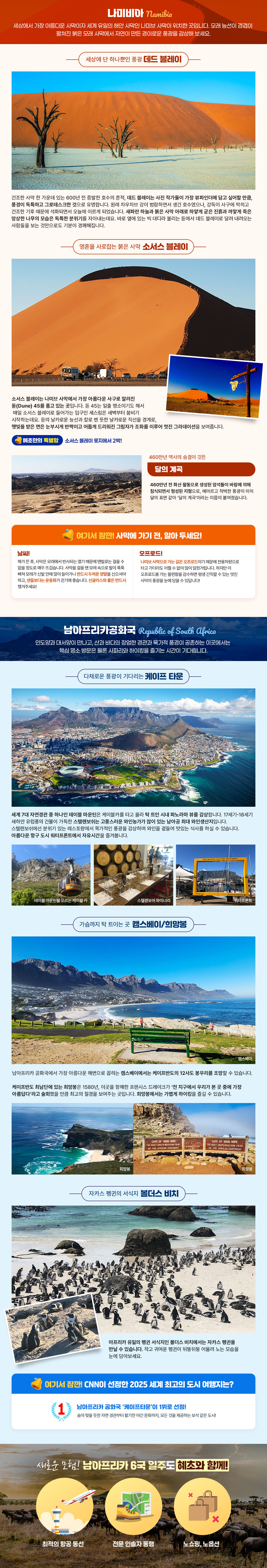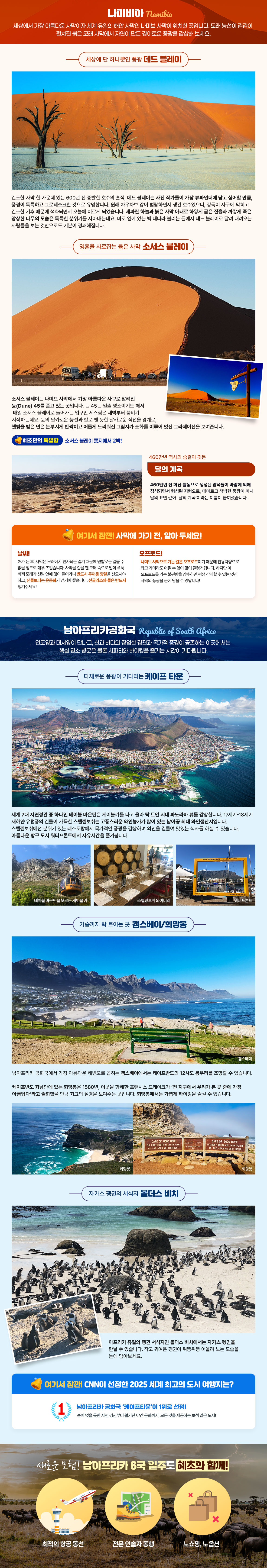 하나. 가장 아름다운 붉은 색을 자랑하는 나미비아의 소서스 블레이 사막을 여유롭게 탐방