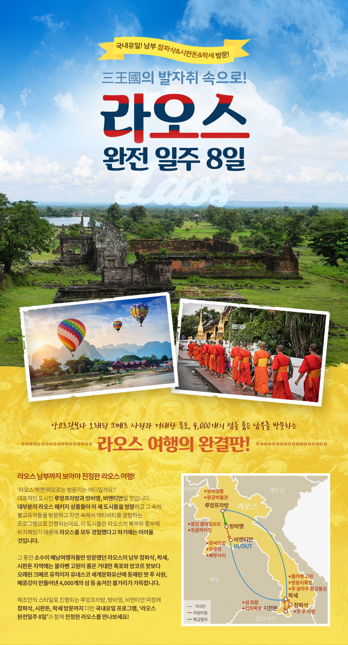 하나. 라오스 북부,중부,남부에서 최소 2박 진행으로 여유롭고 깊이 있는 완전 일주 여행