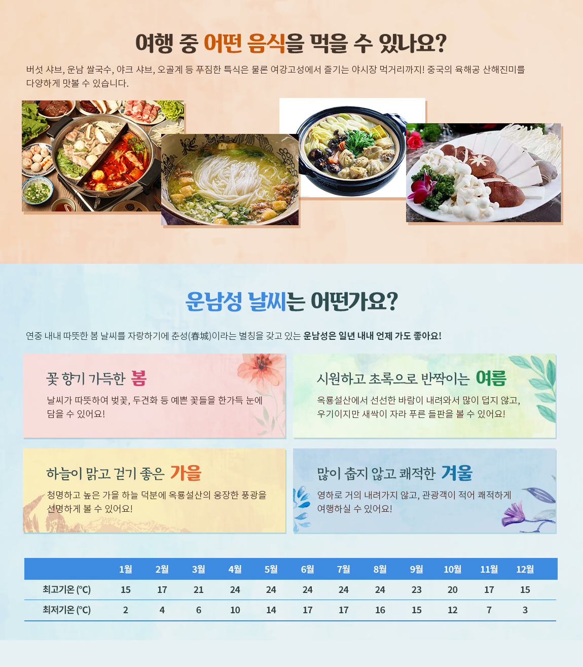 * 본 상품은 총 일정 중 고산지대(3,000m 이상) 방문 일정이 있습니다. [ 4일차-운삼평/ 6일차-중전 ] 개인 컨디션에 따라 두통, 식욕저하 등의 고소증세를 경험할 수 있습니다. 고산 지대에서의 당연한 증상들로 지대가 낮아지면 자연스럽게 완화됩니다.