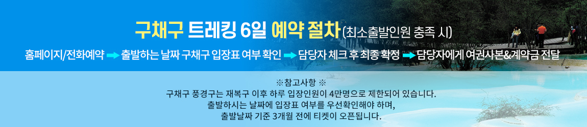 <<구채구/황룡 트레킹+관광 6일>>이라고 꼭 기재 부탁드립니다