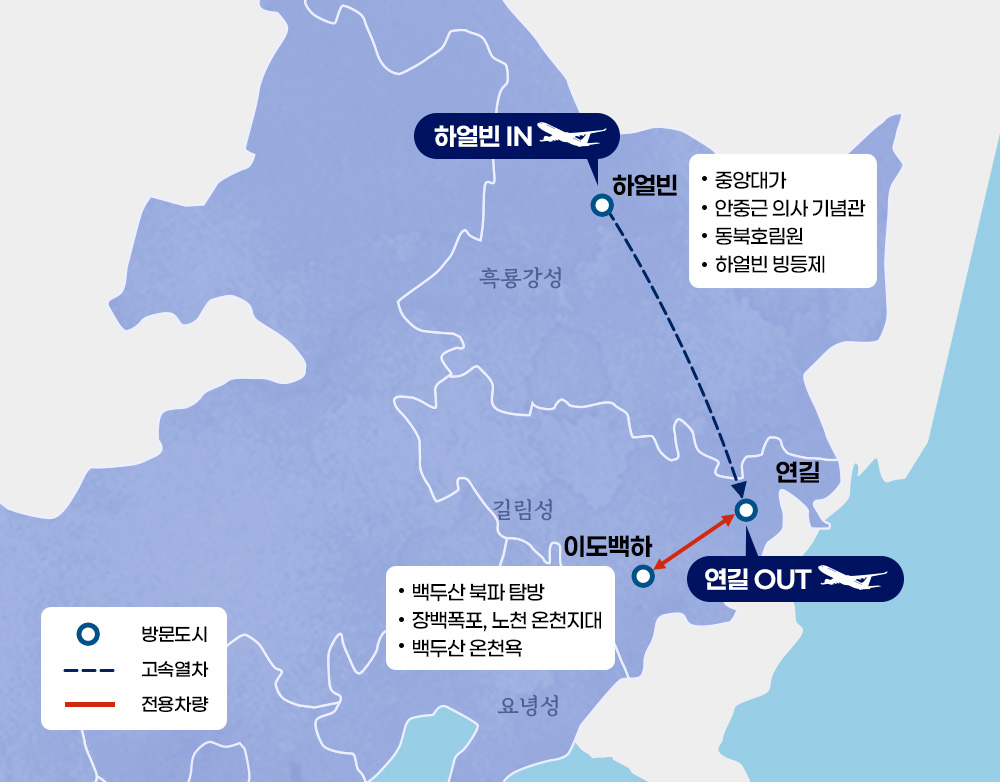 인천-하얼빈-연길-이도백하-연길-인천