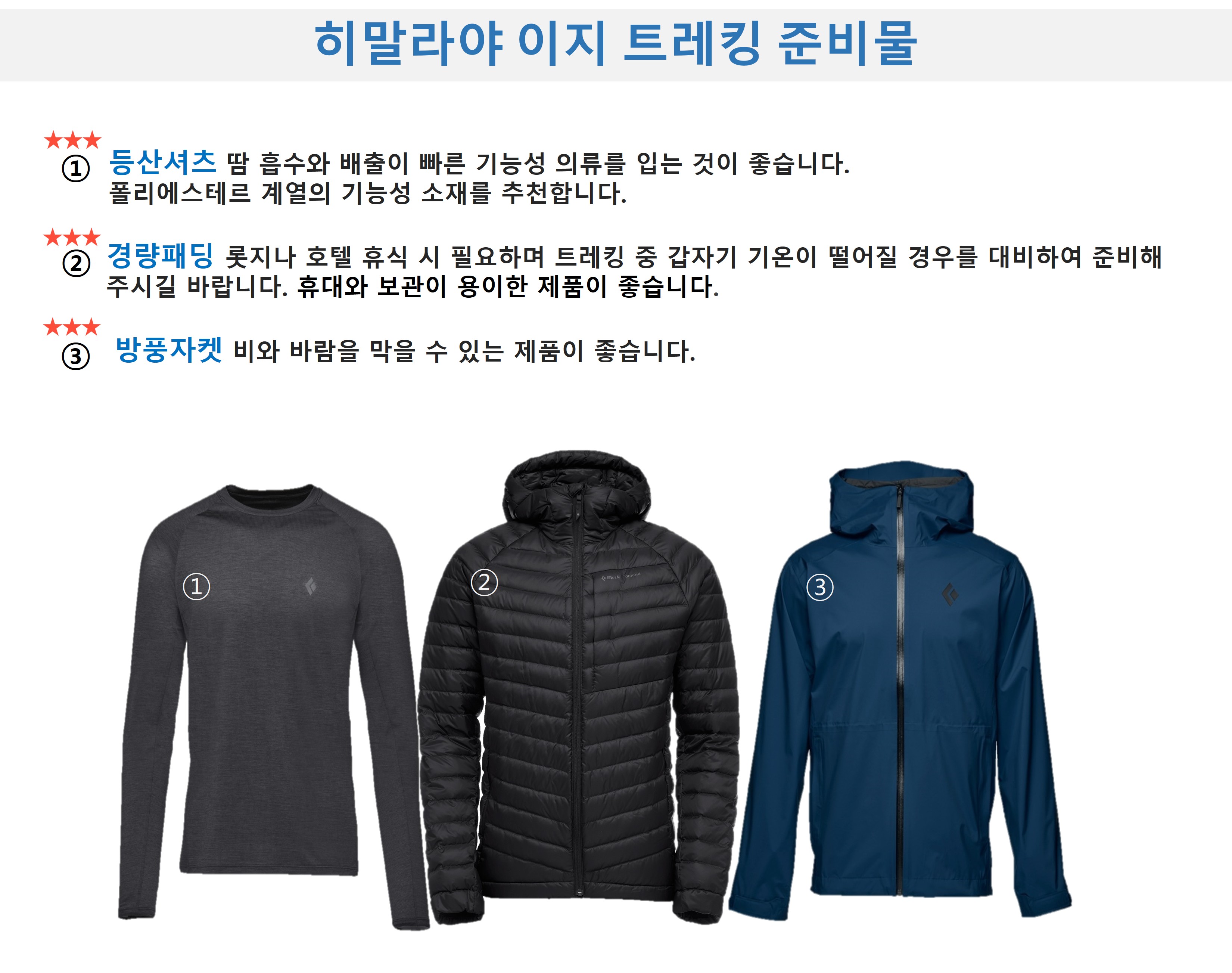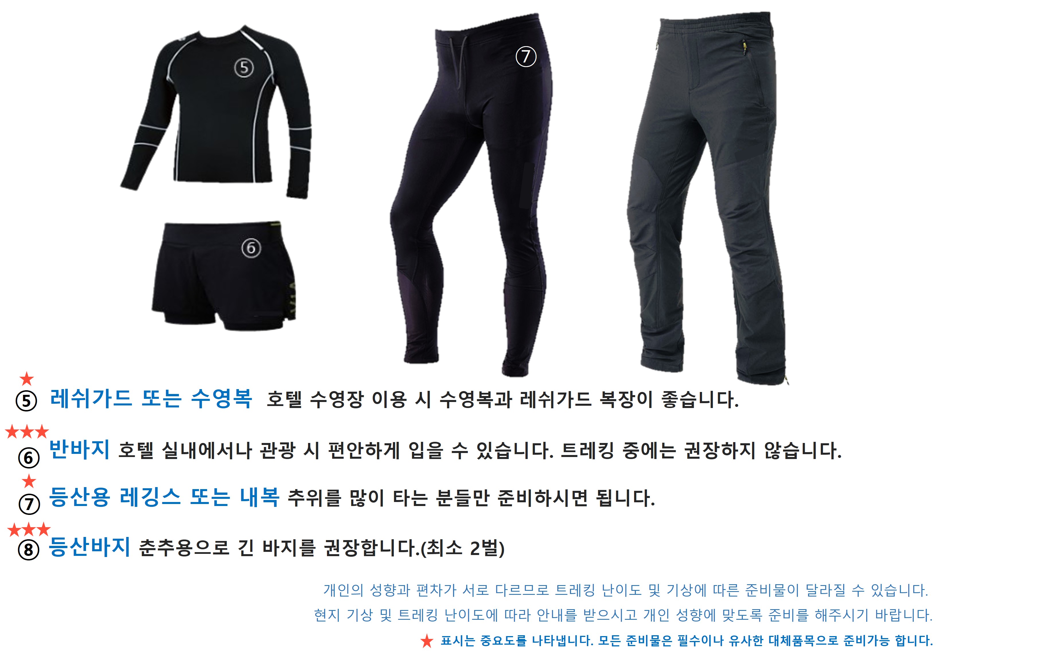 침낭 및 공통적으로 대여하거나 지급되는 장비를 제외한 개인의 트레킹에 필요한 장비는 개인이 직접 준비하여 사용해주시기 바랍니다. 미흡한 장비로 인해 발생하는 책임은 본인에게 있습니다.
