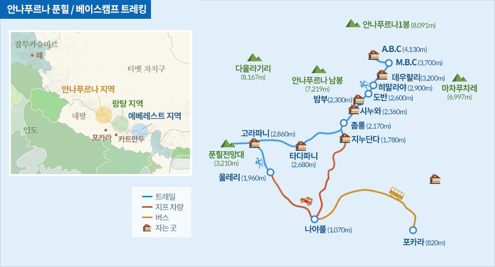 푼힐 파노라마와 베이스캠프를 잇는 핵심 코스