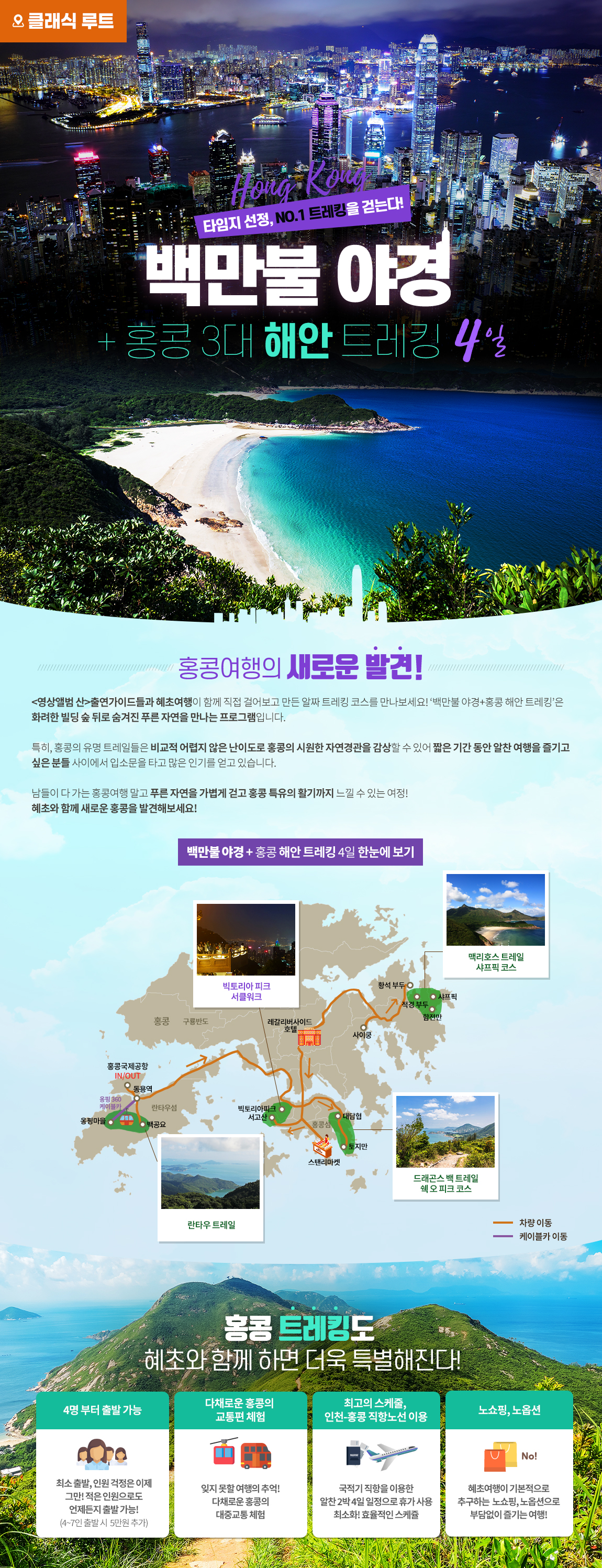 [클래식루트][홍콩] 백만불 야경과 3대 해안 BEST 트레킹 4일