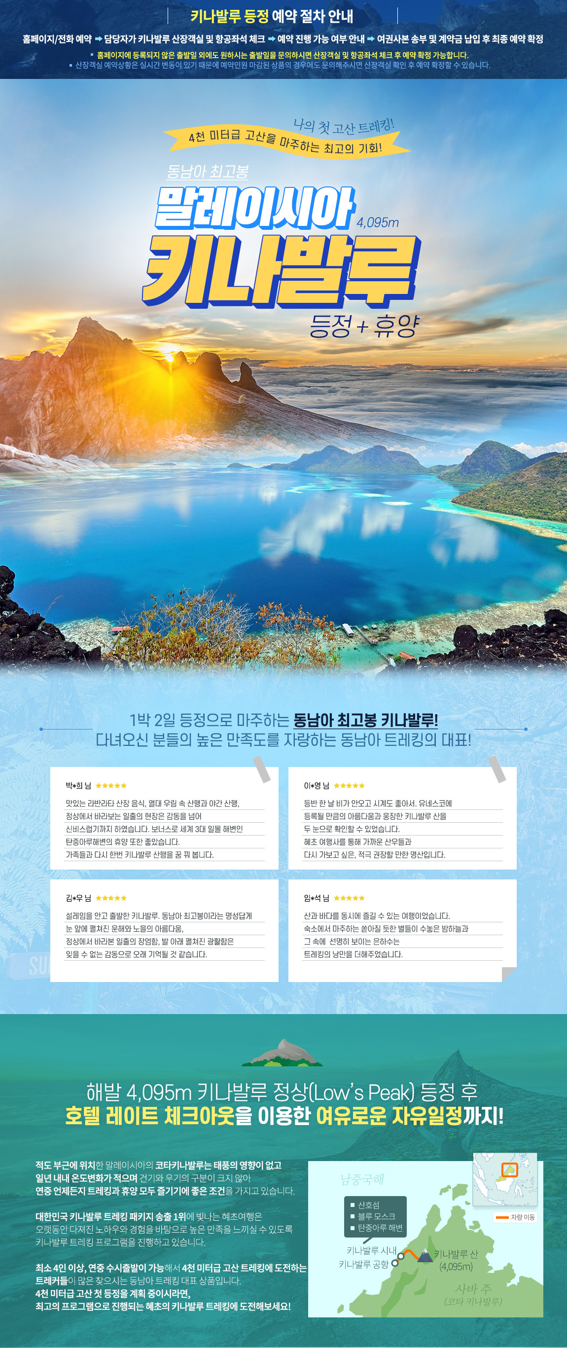 : 키나발루 산장은 수용인원이 한정되어 있어 예약 확정 후 산장요금 전액지불 조건으로 예약이 가능하므로