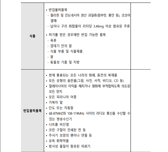 [말레이시아 여행자 통관정보 - 통관청] 2025.5 기준