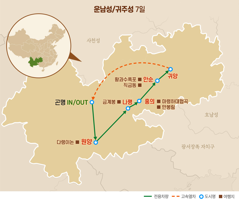 인천-곤명-원양-나평-흥의-안순-직금-귀양-곤명-인천