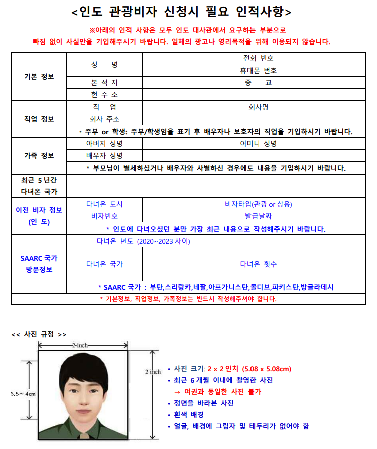 ■ 인도 비자 준비서류