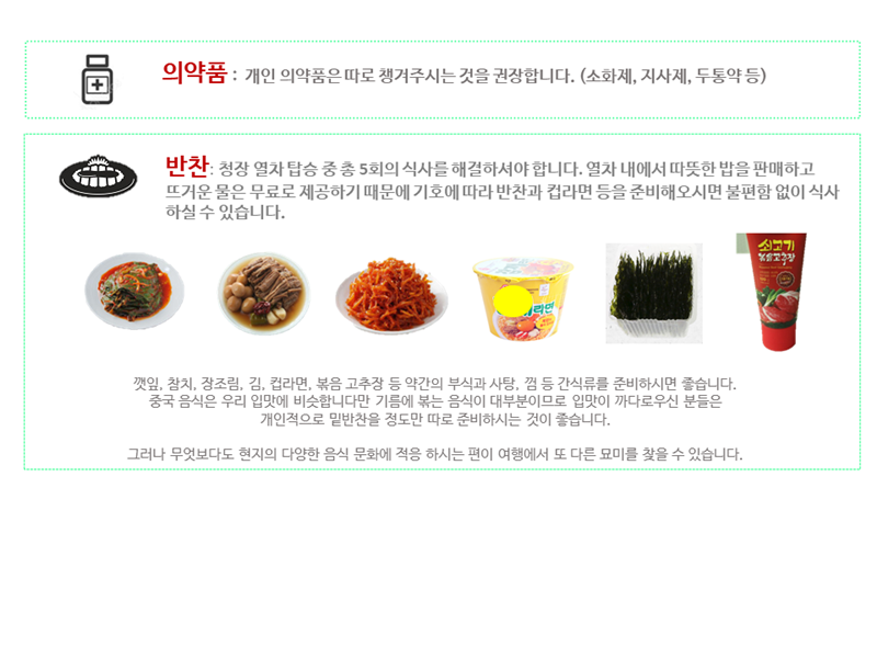 ■ 전 일정 식사(청장열차 內 식사 2회 포함, 식사 총 3회 제외)