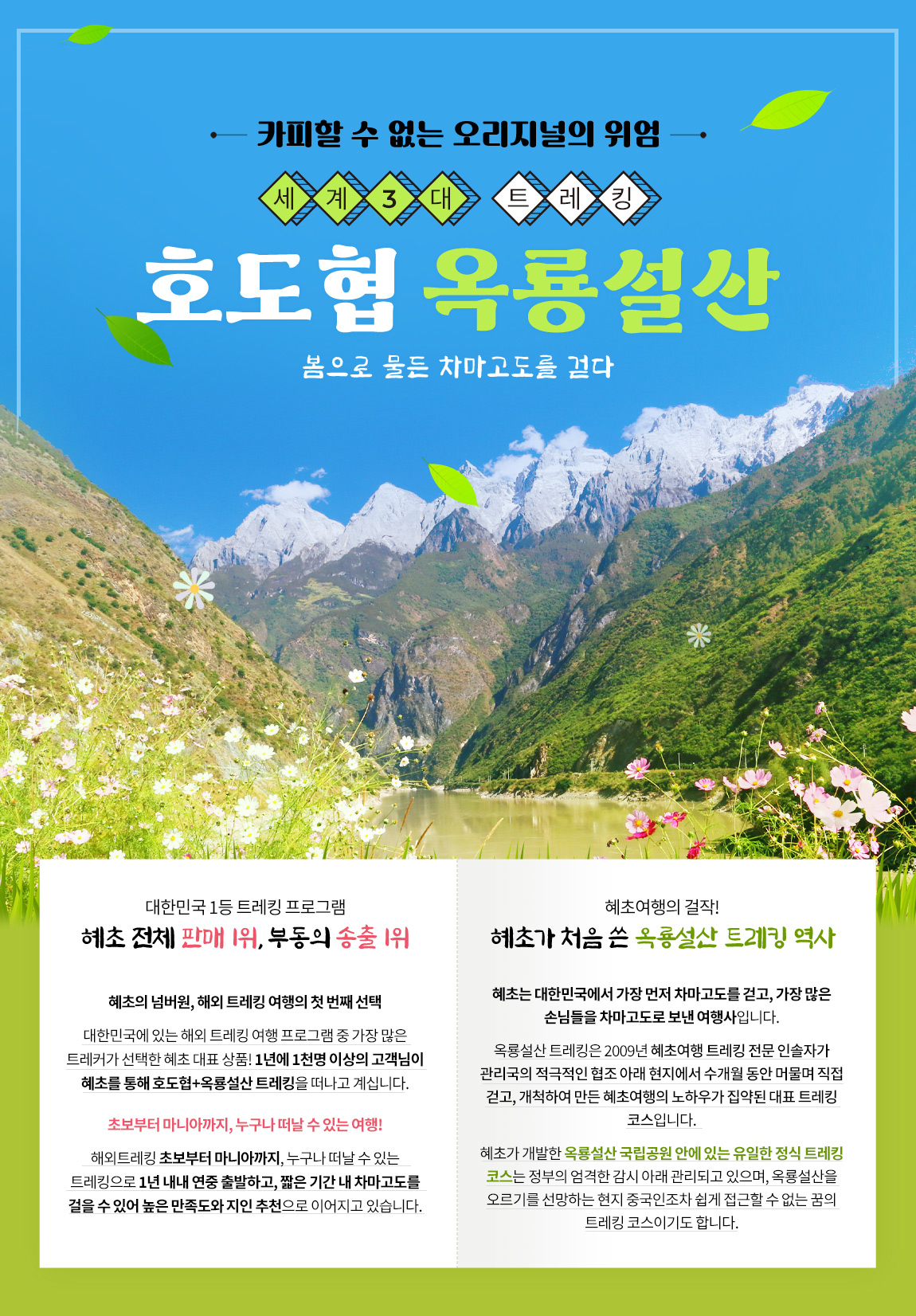 <<세계 3대 트레킹 호도협+옥룡설산>>이라고 꼭 기재 부탁드립니다