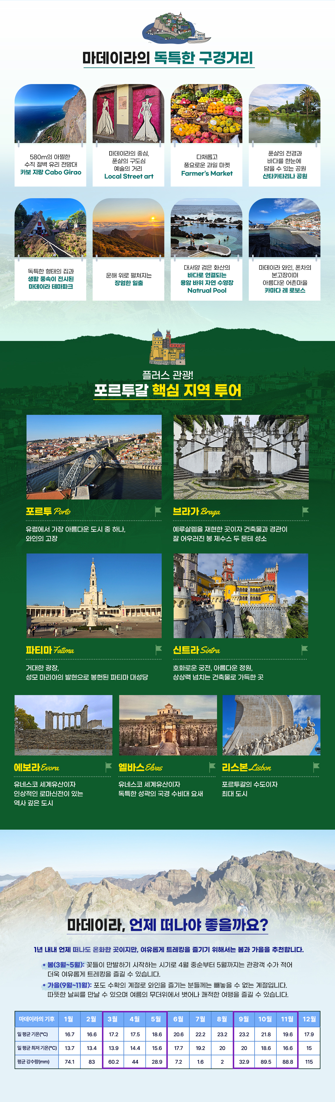포르투갈 / 마데이라, 포르투, 브라가, 파티마, 신투라, 에보라, 엘바스, 리스본