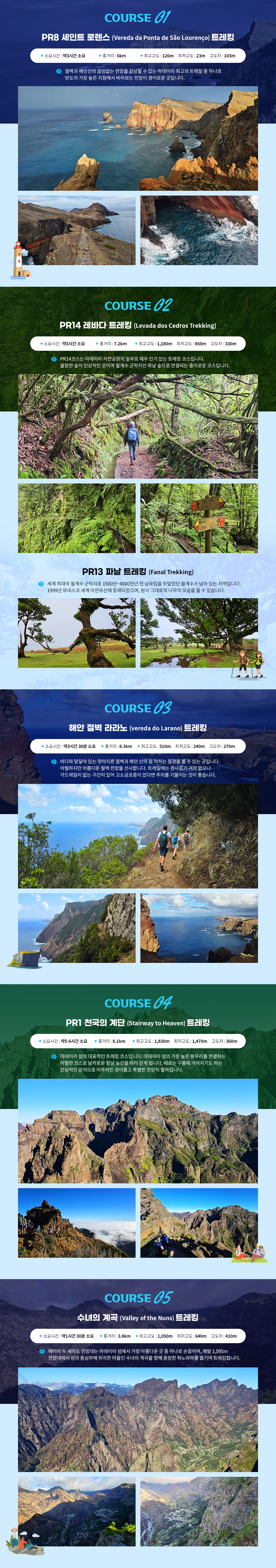 마데이라 정부는 2026년 4월 중으로 통제되었던 메인 트레킹코스인 PR1을 재 오픈하며 13.5유로 PR8, PR14 트레일은 4유로의 입산료를 신설하였습니다. 본 상품은 입산료 신설전에 세팅되어 부득이하게 신설된 등산 입산료 21.5유로/인을 잔금 요청시 환율에 따라 추가 요청 드리게 됩니다.