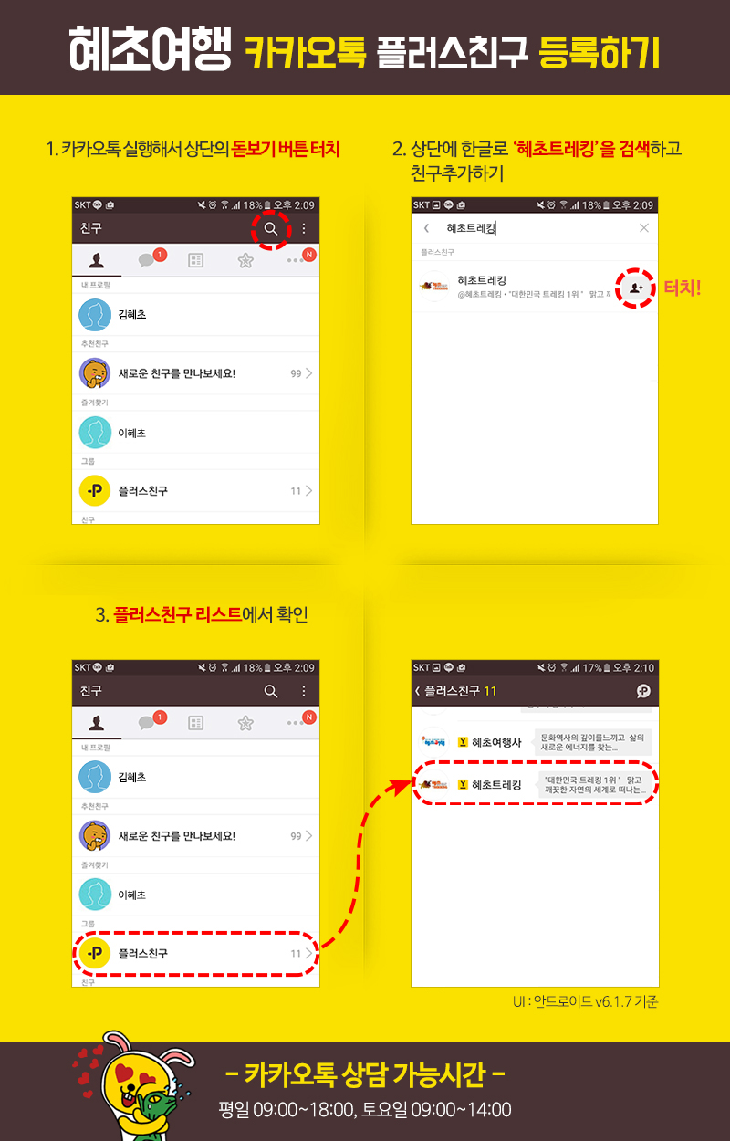 카카오톡 : 플러스친구 "혜초트레킹”