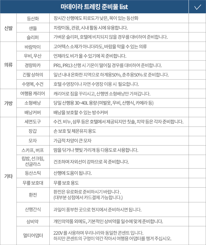 둘, 고소공포증이 있는 분들은 2곳의 트레킹 참가가 불가합니다. (천국의 계단, 라라노 트레킹)