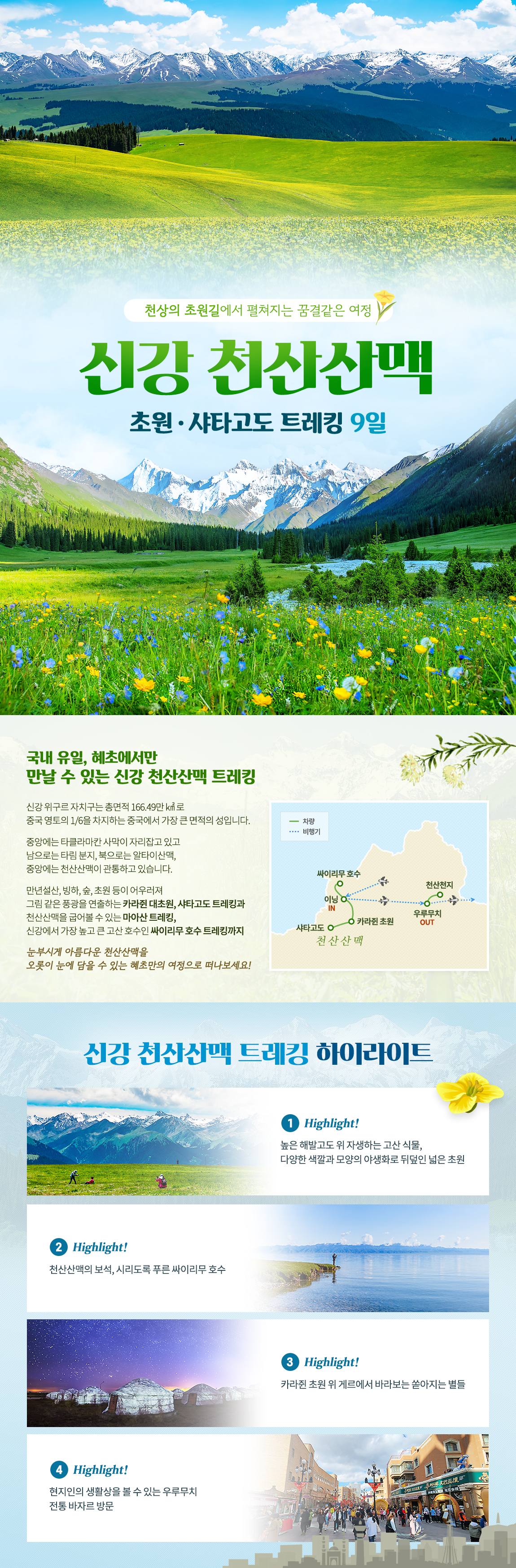 [신상품][신장]천산산맥초원/샤타고도 트레킹 9일 [기차탑승]