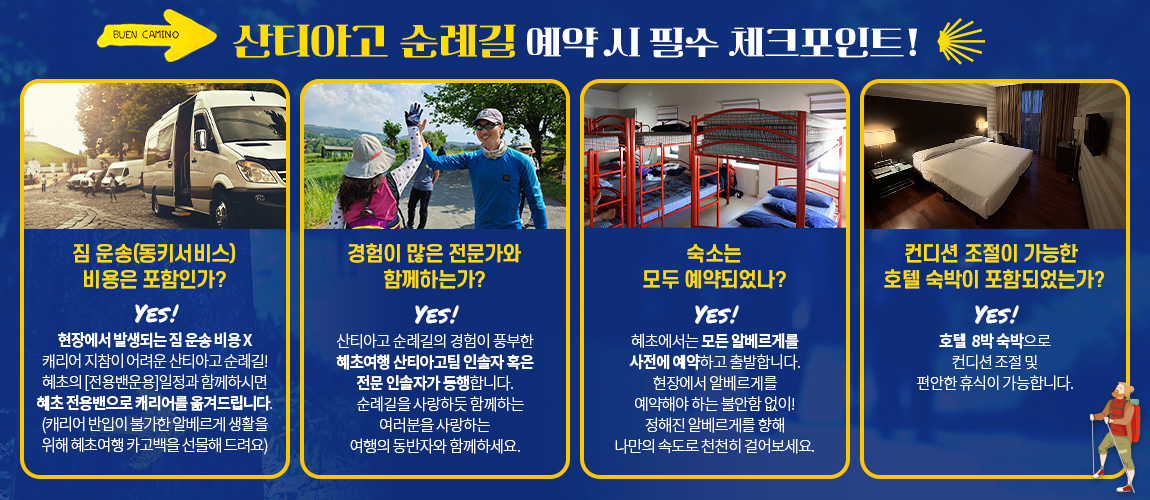 하지만 인솔자 및 가이드가 여러분들이 성공적으로 순례를 마칠 수 있도록 도우미 역할을 합니다.