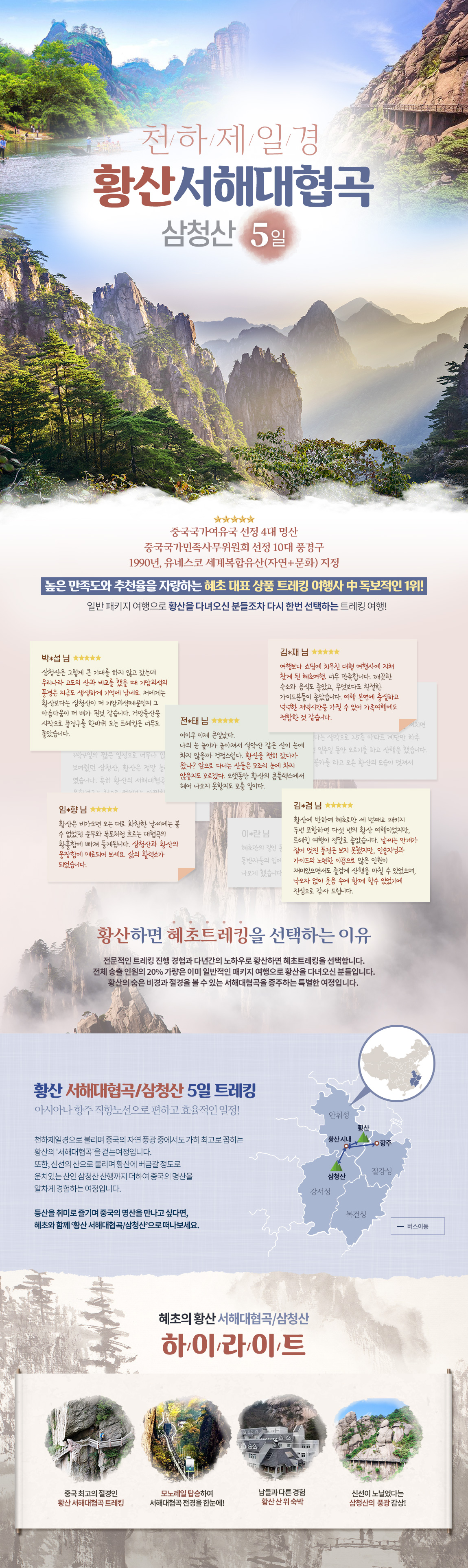 황산 서해대협곡/삼청산 트레킹+관광 5일