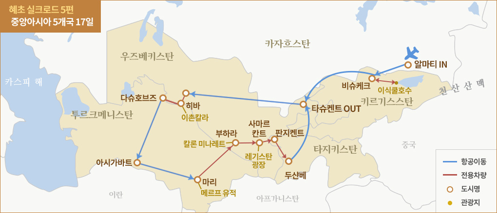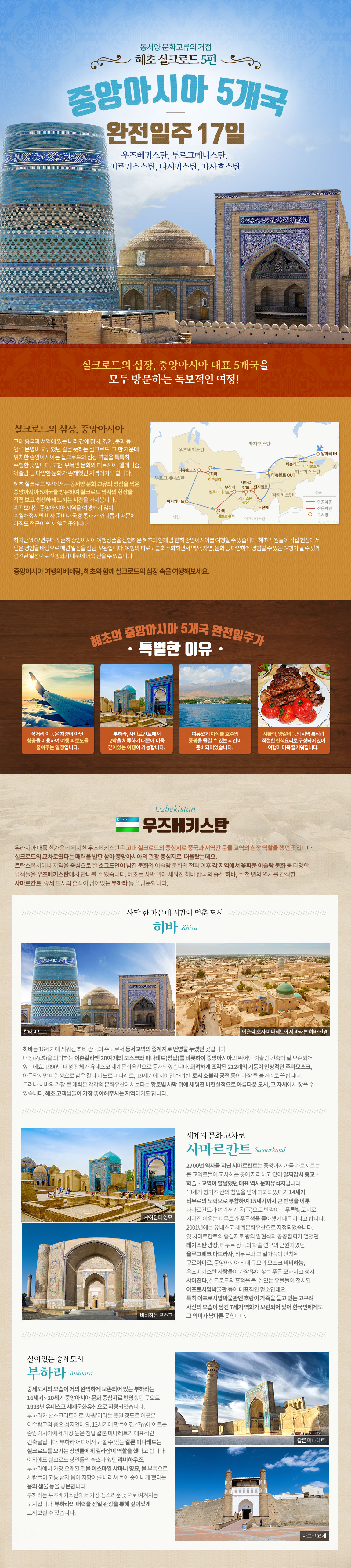 [혜초 실크로드 5편] 중앙아시아 5개국 완전일주 17일 (OZ)